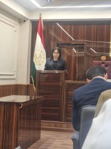 Баромади котиби маҷлиси судии суди ноҳияи Спитамен Солиҷонзода Мақсуда Солиҷонӣ дар семинари навбатӣ дар суди вилояти Суғд.
