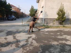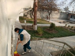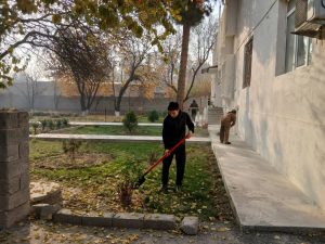 Субботник на территории суда Спитаменского района с участием сотрудников данного суда.